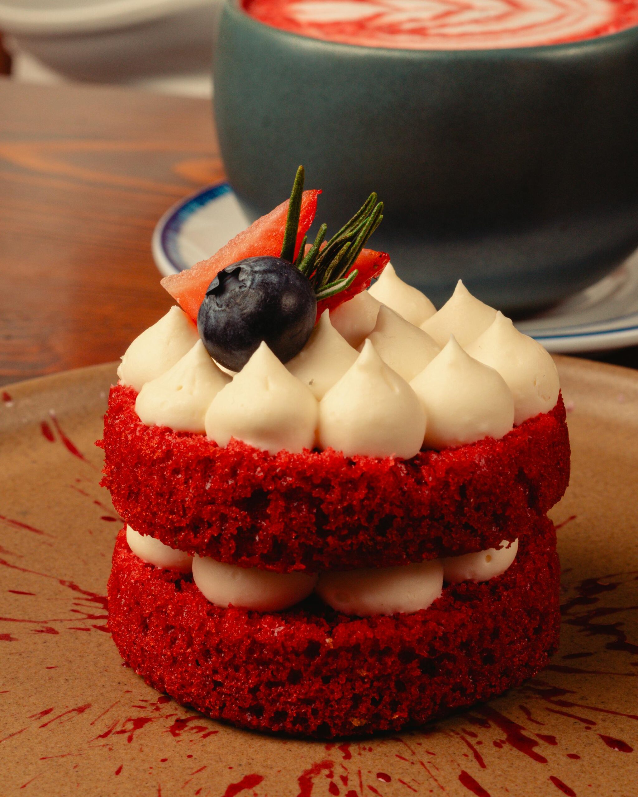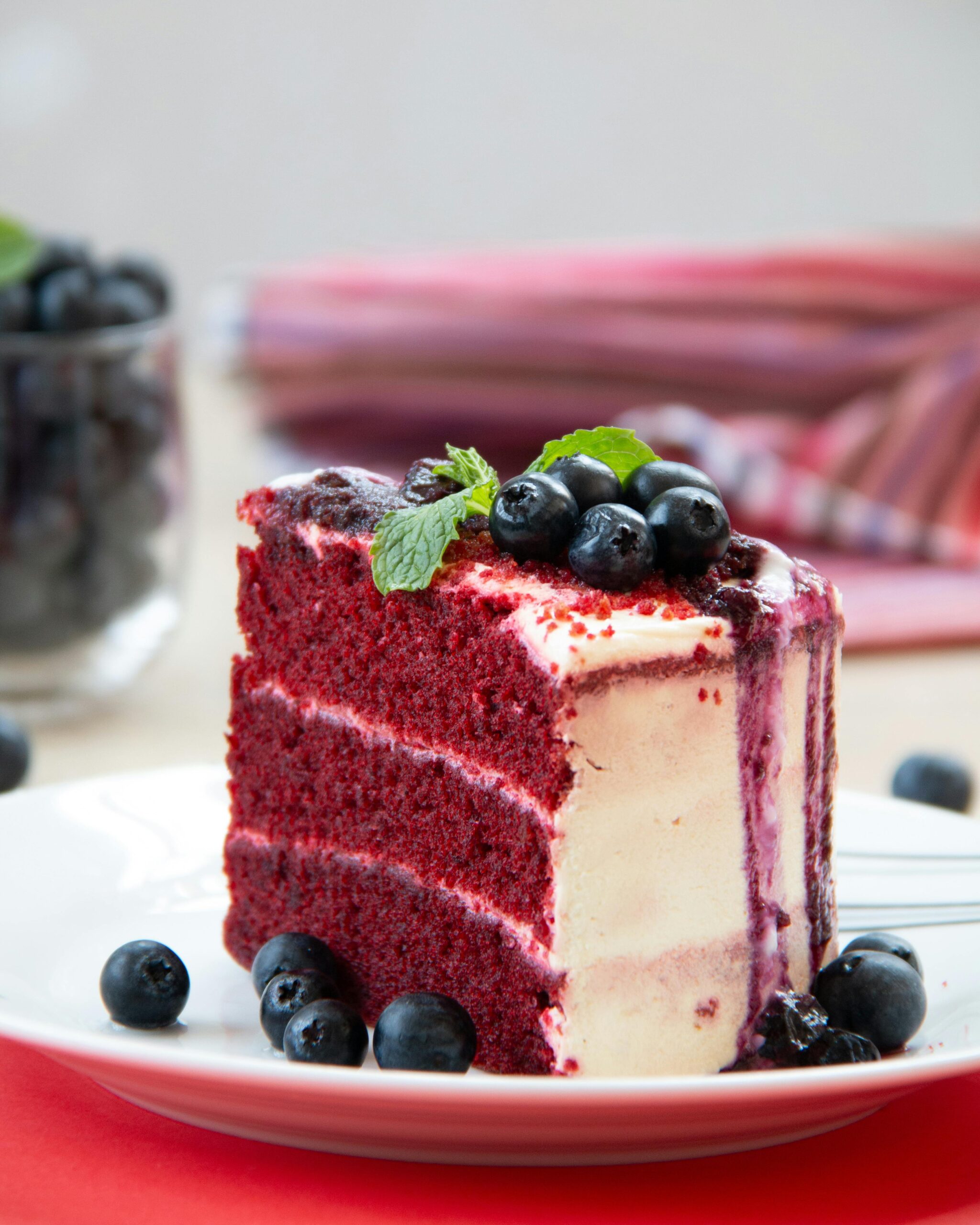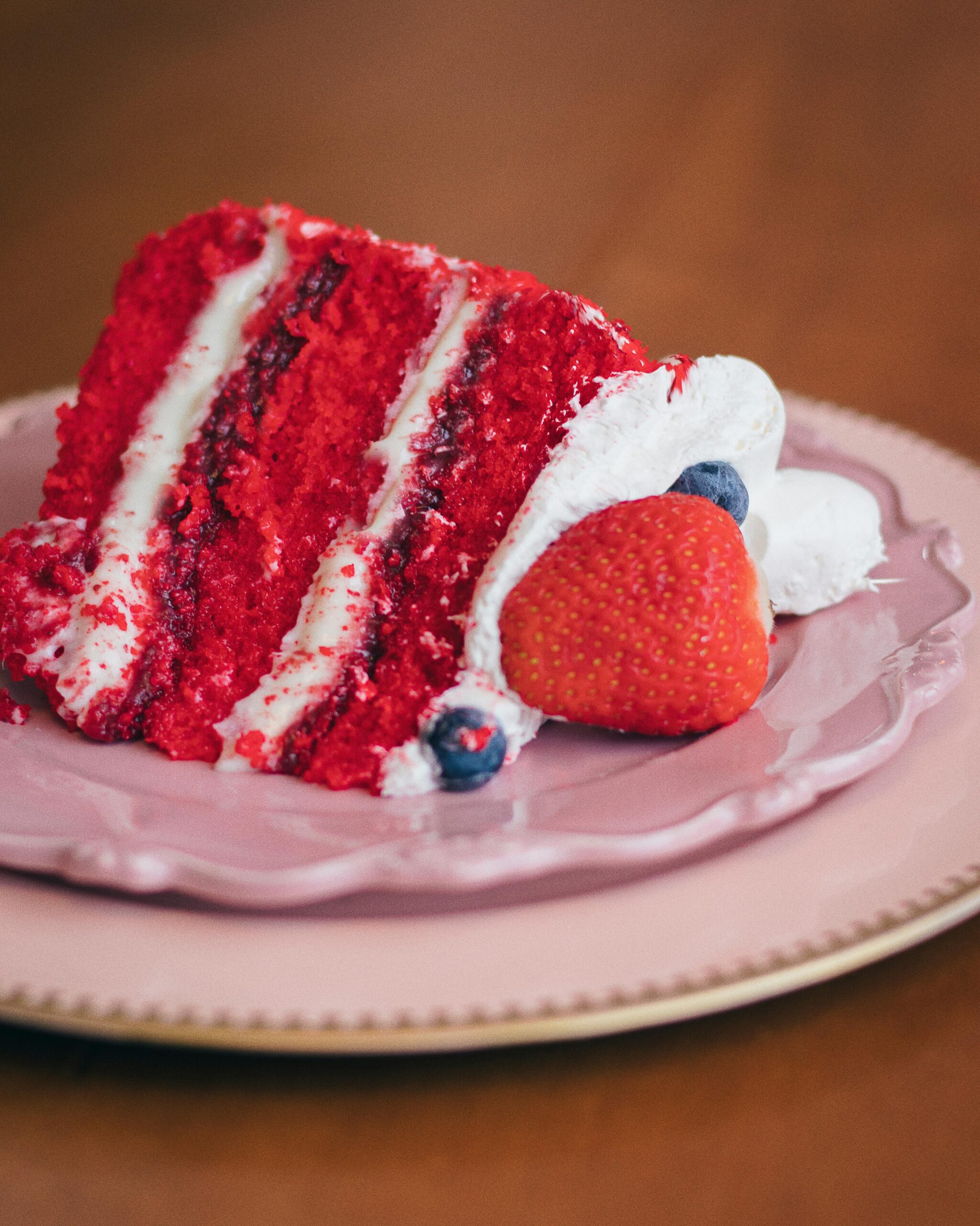 A classic red velvet cake topped with rich cream cheese frosting. The deep red color of the cake makes it visually stunning, while the velvety texture and unique flavor make it irresistible. This cake is a favorite for celebrations, holidays, and birthdays. Each slice offers a perfect combination of tangy cream cheese and soft, moist cake. Indulge in the goodness of this classic treat that is sure to impress your guests!